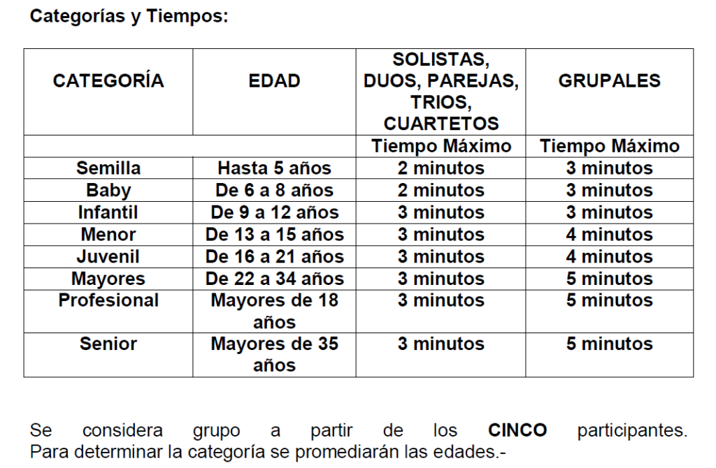 6) – En el caso que la coreografía exceda el tiempo de participación podrá ser sancionada.